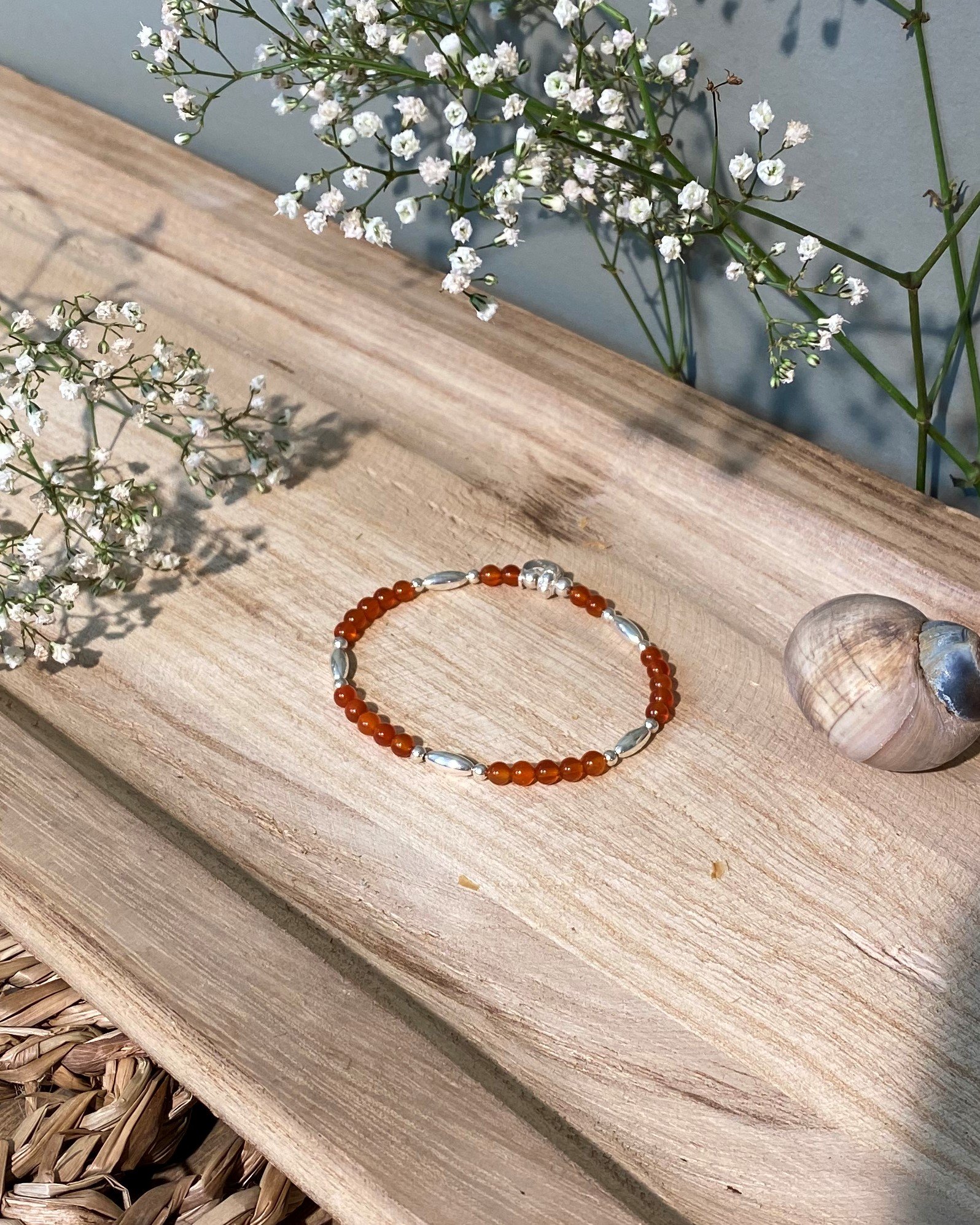 Deze mooie Red Agaat armband heeft een heel speels ontwerp. Er wordt gebruik gemaakt van natuurlijke ronde agaat kralen en zilveren ronde en grote ovale kralen. Echt een prachtig design!