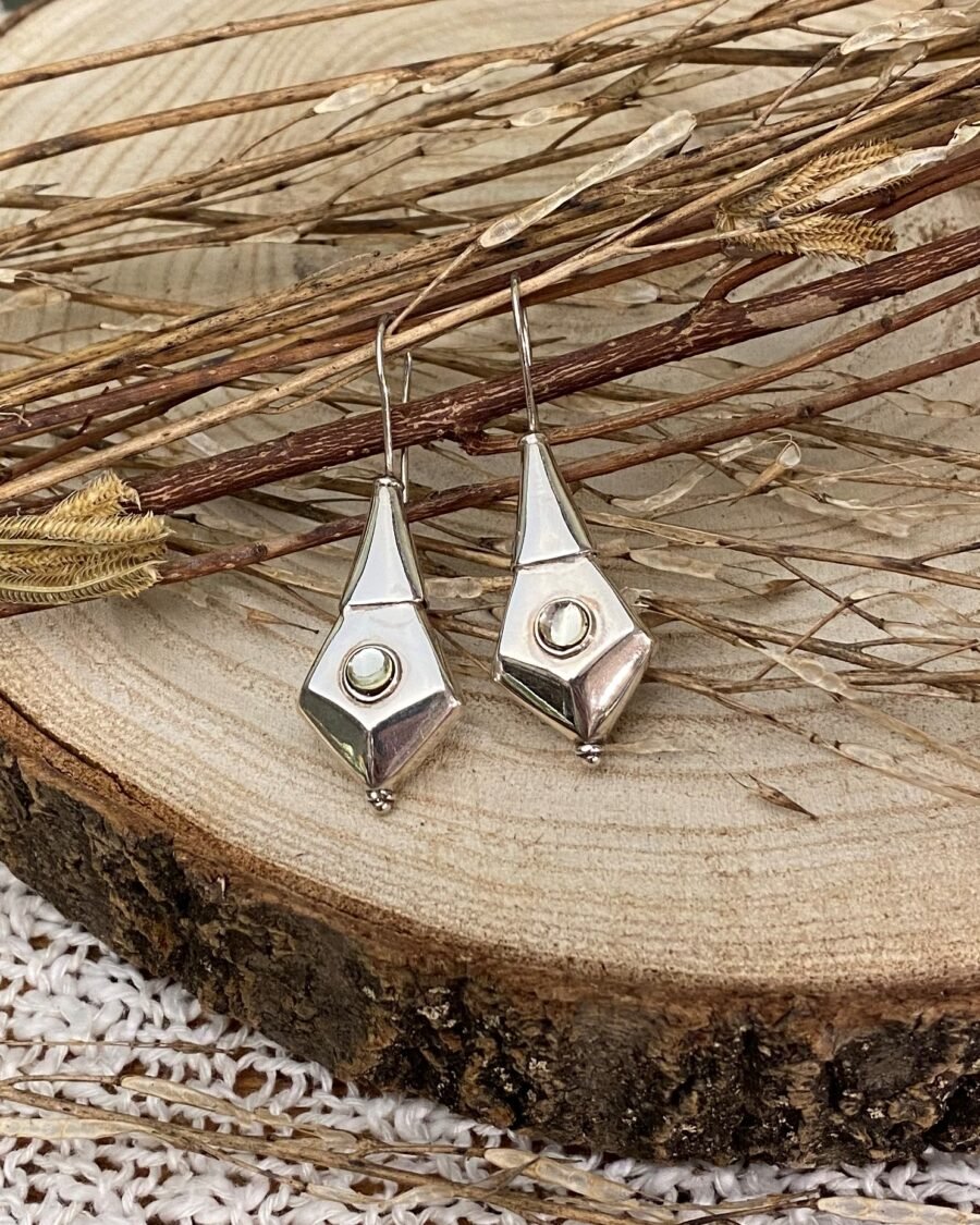 Prachtige boho ruite oorstekers met een Peridot edelsteentje.