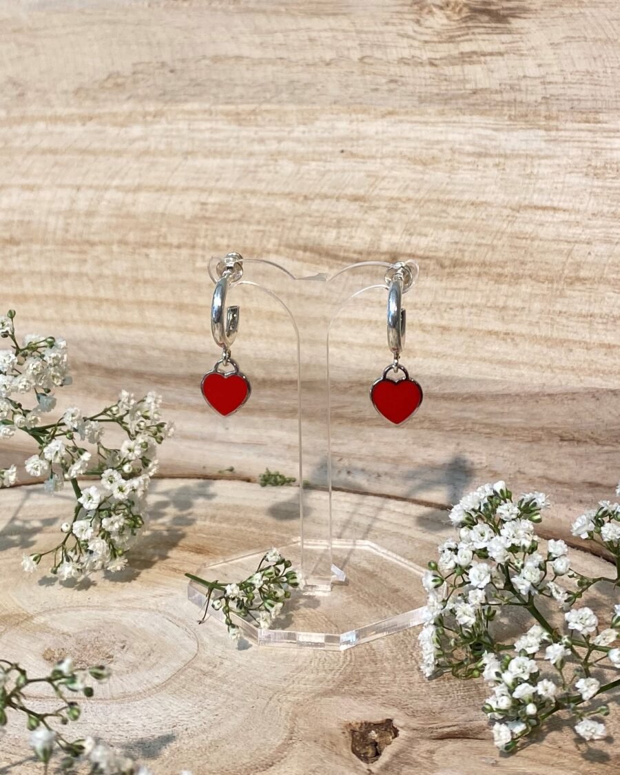 Mooie ronde oorbellen (maat S) met een hartjes bedel in de kleur rood. We hebben deze oorbellen ook in de kleur zwart en blauw/groen