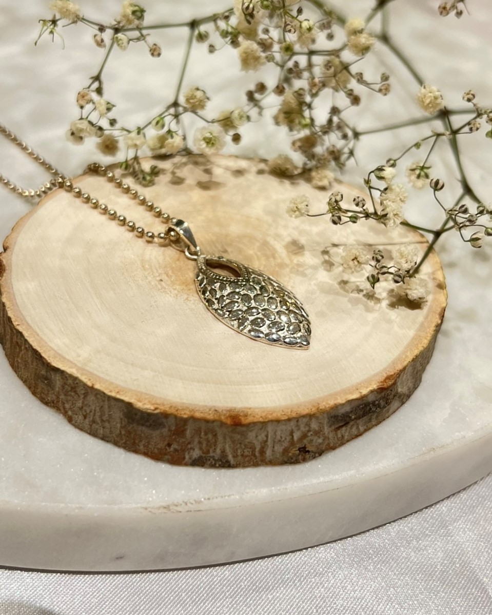 Chique 925 sterling zilveren etnisch hanger. Het is een casual sieraad, perfect om een alledaagse look mee aan te vullen. De ketting (Ball chain 2mm 80cm lang) op foto wordt niet meegeleverd, maar kun je wel direct meebestellen. We hebben diverse kettingen in ons basis assortiment.